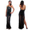 ウェット生地ストレッチボディコン ブラック